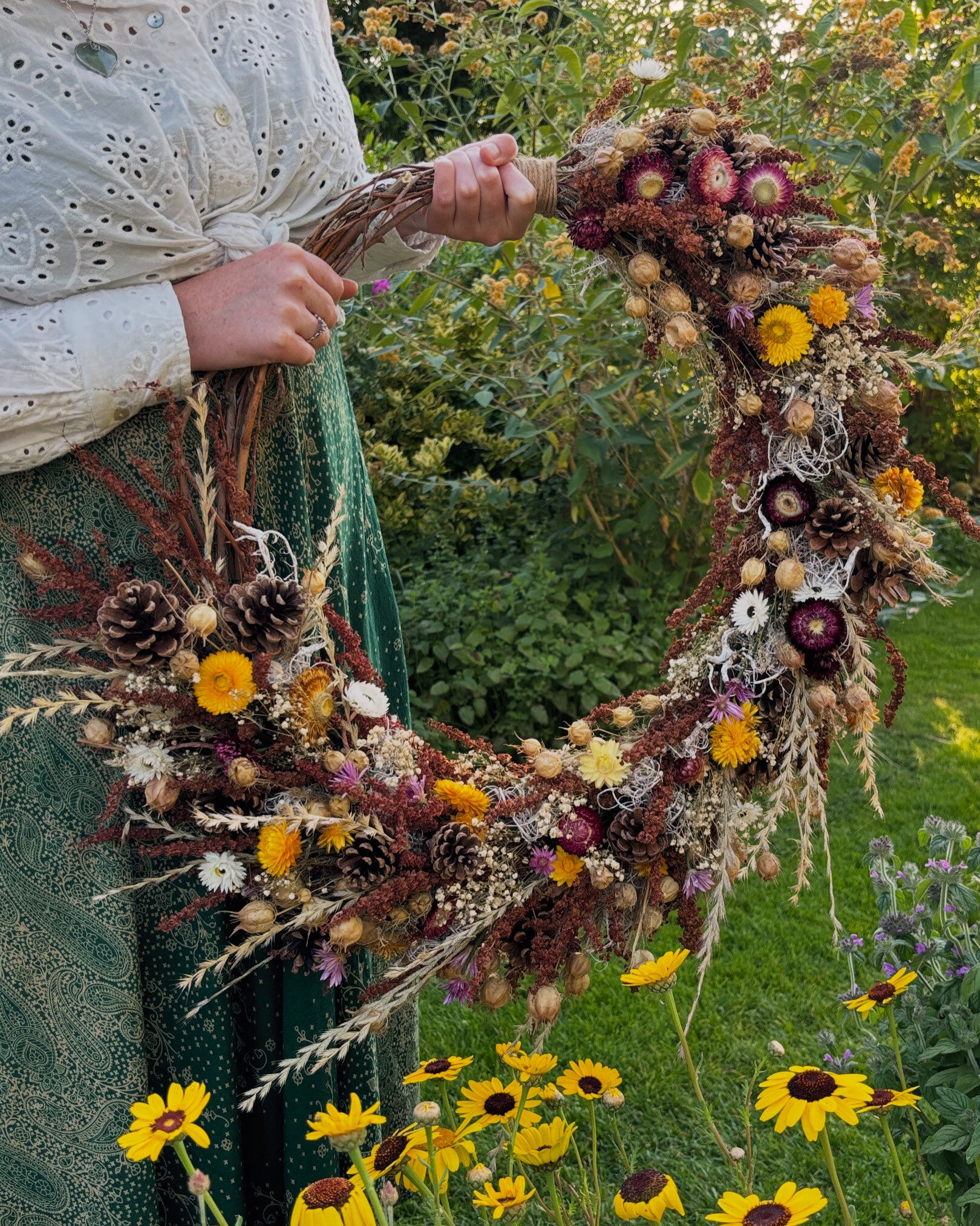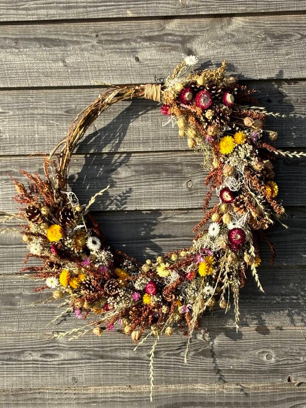 krans - droogbloemen - droogbloemenkrans - kransen - voordeurkrans - grote krans - krans van droogbloemen - grote krans