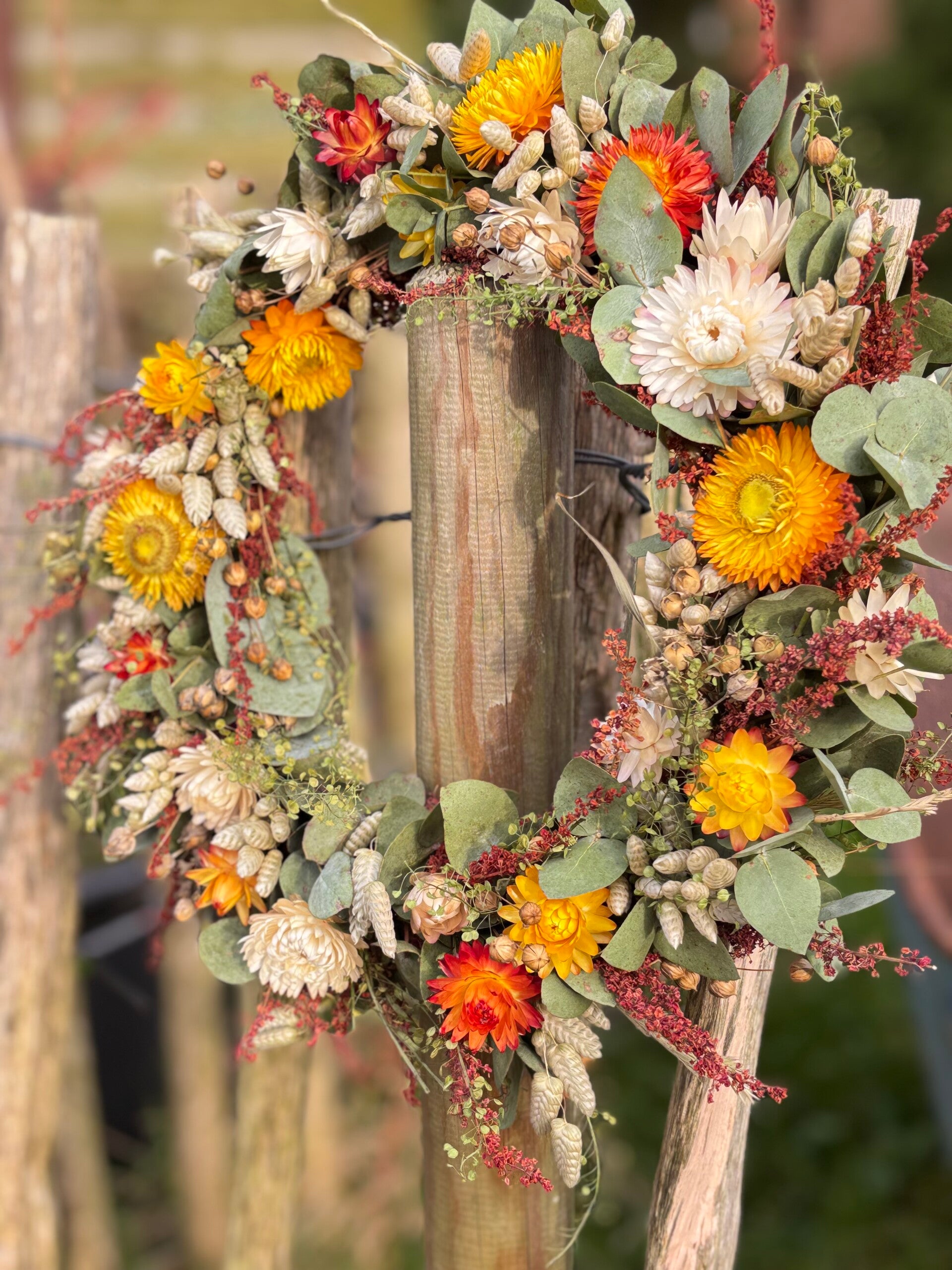 Droogbloemen krans roomwit met geel