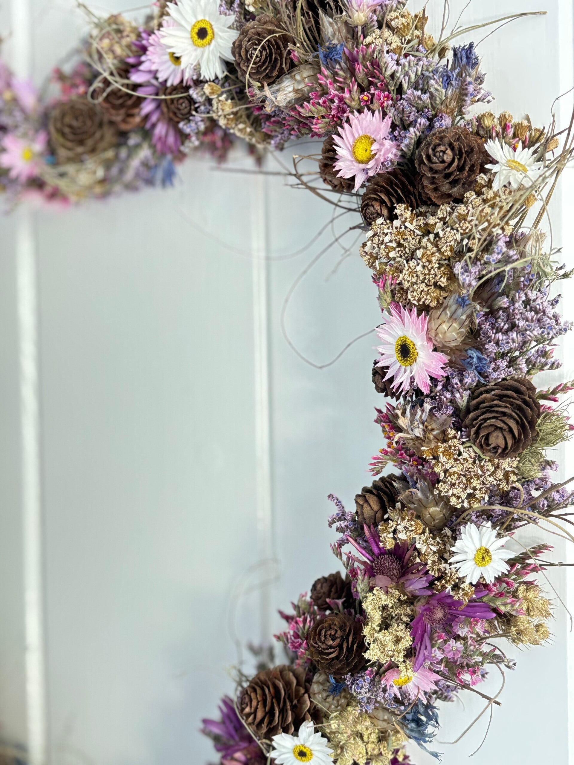 krans - kransen - droogbloemen krans - herfstkrans - krans van droogbloemen - landelijke krans - neutrale krans - hart van droogbloemen