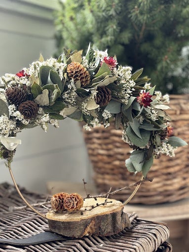 Wij werken graag zo duurzaam mogelijk. Dat zie je terug in onze materiaalkeuze. We kiezen ervoor om met materialen te werken die mooi indrogen. Zoals eucalyptus en gedroogde vruchten. Je hoeft je creatie na de kerstdagen dus niet weg te gooien, maar kan er nog lang van genieten.
